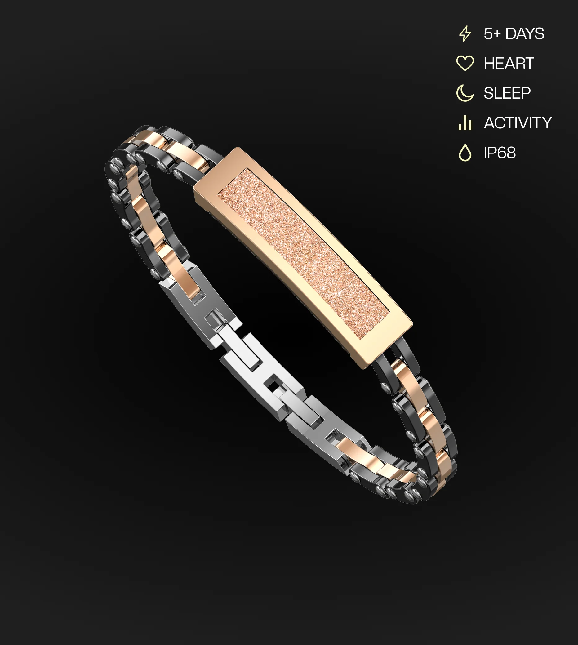 Inspired by nature’s delicate artistry, the Inara smart bracelet in Gold effortlessly blends intricate artistic patterns with cutting-edge wearable tech. Crafted for those who appreciate elegance with purpose, this ring is more than just jewelry — it’s a discreet personal assistant wrapped around your finger.