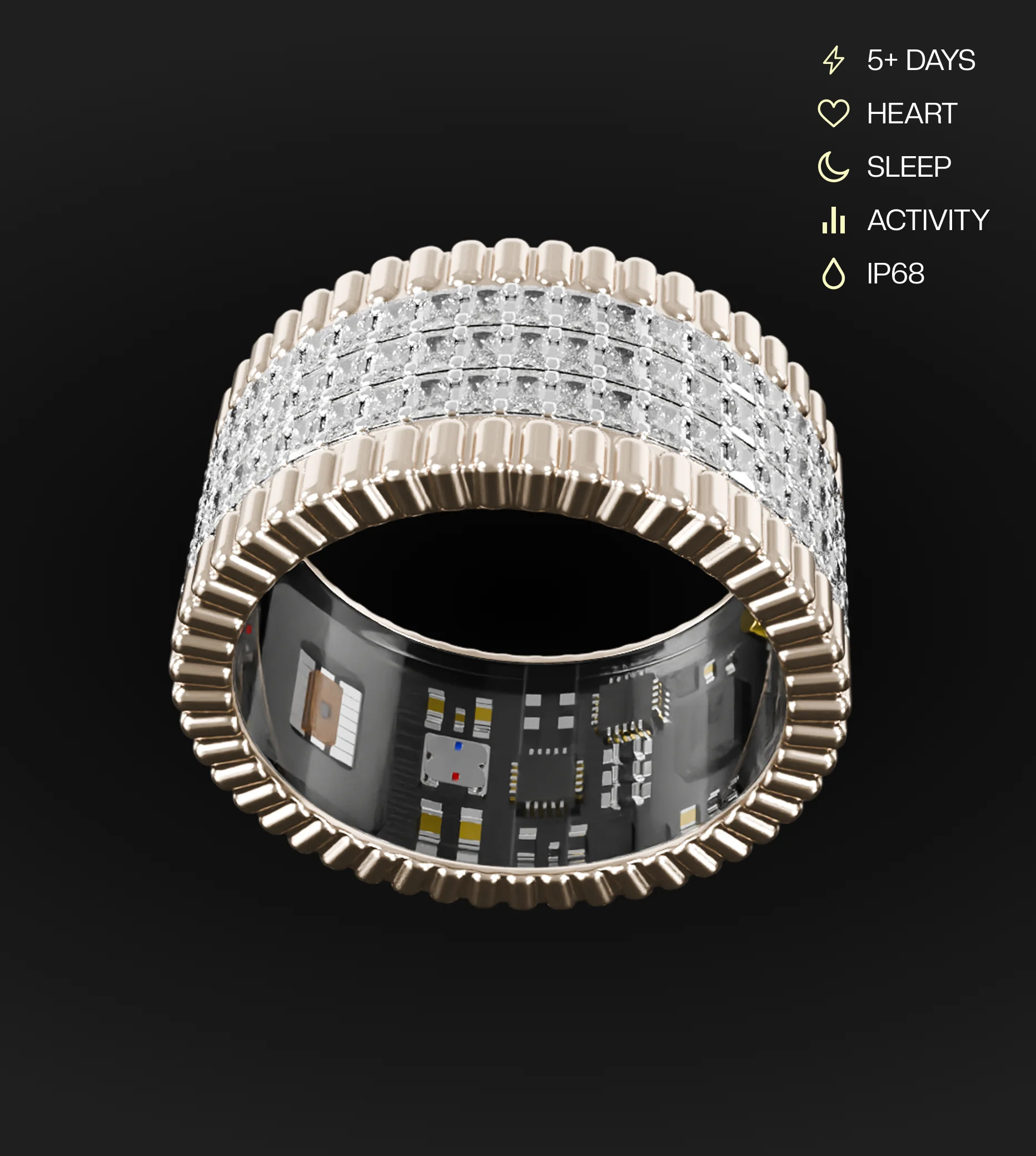 Introducing LUMÉ — a breathtaking fusion of fine craftsmanship and cutting-edge technology. Clad in a radiant diamond-coated finish, this smart ring is designed for those who demand both beauty and brains in their everyday accessories.